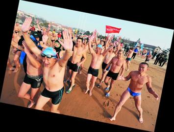 9時(shí)30分,整個(gè)一浴沙灘沸騰起來(lái),300多名冬泳愛(ài)好者們喊著號(hào)子沖向大海。冰冷刺骨的海水一時(shí)間浪花四濺,海水中人頭攢動(dòng)?!斑@個(gè)天穿著棉衣都覺(jué)冷,他們還往海里鉆,實(shí)在太厲害了!”許多來(lái)看熱鬧的市民圍在沙灘上,看這幫“不怕冷的人”撲通撲通跳進(jìn)水中,不禁發(fā)出驚嘆。穿著棉衣的孫先生見一名冬泳愛(ài)好者從海中上岸還有說(shuō)有笑,忍不住上前摸摸對(duì)方的胳膊,試試涼不涼?!肮?,你試試熱乎乎的,一點(diǎn)不冷?!边@名冬泳愛(ài)好者也趁機(jī)把手伸到孫先生的臉上,讓孫先生打了個(gè)寒戰(zhàn)。大家都樂(lè)了起來(lái)。