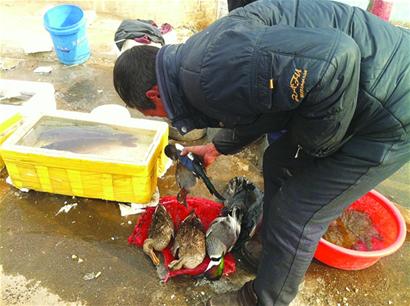 河道冰封野鴨子無處覓食 偷獵者飼料泡藥誘殺牟利(圖)