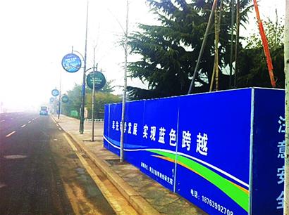 昨天上午10時(shí),記者來(lái)到了青島國(guó)際會(huì)展中心南門附近看到,在馬路邊的人行道上多了一個(gè)個(gè)的藍(lán)色圍擋。每一個(gè)里面都有機(jī)器在轟鳴著。藍(lán)色圍擋上寫著“率先科學(xué)發(fā)展,實(shí)現(xiàn)藍(lán)色跨越”等字樣。記者走進(jìn)了其中一個(gè)藍(lán)色圍擋里,兩名工人正在操作著一個(gè)像鉆井機(jī)一樣、高4米左右的機(jī)器。