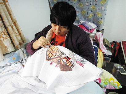 眼看著媽媽頭上的白發(fā)越來越多,身體也變差了,琪琪心里非常著急,她很想找機(jī)會幫幫媽媽。兩年前的一個偶然機(jī)會,琪琪接觸到了十字繡,在鄰居阿姨的指導(dǎo)下,琪琪開始把所有的精力都投入到十字繡上,并且希望把作品賣出去,減輕媽媽的負(fù)擔(dān)。很快,琪琪從一個十字繡初學(xué)者,練成了“十字繡達(dá)人”。