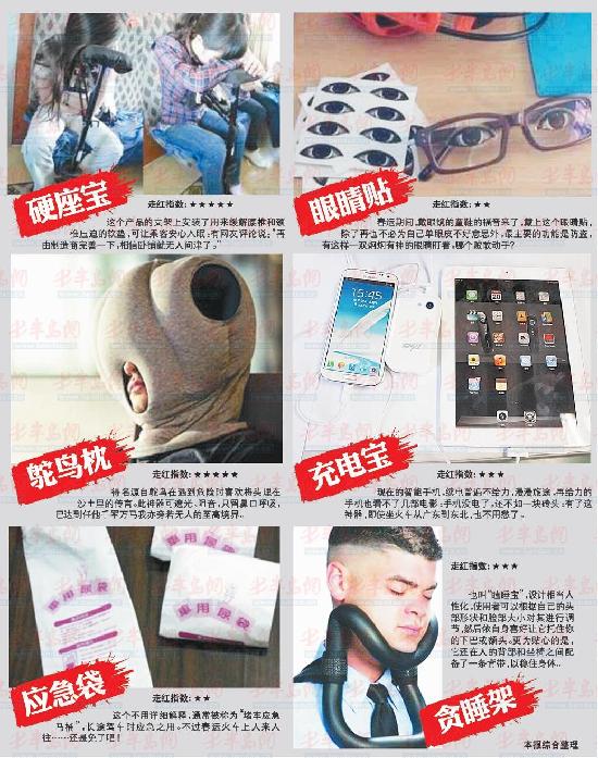 ????鴕鳥枕、硬座寶、折疊式小馬扎、便攜式尿袋……春運將至,各種“春運神器”開始在網(wǎng)上走紅。據(jù)統(tǒng)計,僅新浪微博上就有超過26萬網(wǎng)友參與“春運神器”的討論。有網(wǎng)友問:“春運神器”,大家看看哪款適合你?