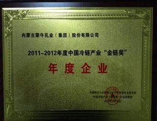 ??? 日前,由中國(guó)物流與采購(gòu)聯(lián)合會(huì)主辦的中國(guó)冷鏈產(chǎn)業(yè)物流界最高盛會(huì)“第六屆中國(guó)冷鏈產(chǎn)業(yè)大會(huì)暨2012 中國(guó)冷鏈企業(yè)領(lǐng)袖年會(huì)”在江蘇昆山召開。蒙牛集團(tuán)作為國(guó)內(nèi)領(lǐng)先食品企業(yè),榮獲被業(yè)界稱為中國(guó)冷鏈物流最高榮譽(yù)獎(jiǎng)項(xiàng)“2011-2012年度中國(guó)冷鏈產(chǎn)業(yè)‘金鏈獎(jiǎng)’年度企業(yè)”。