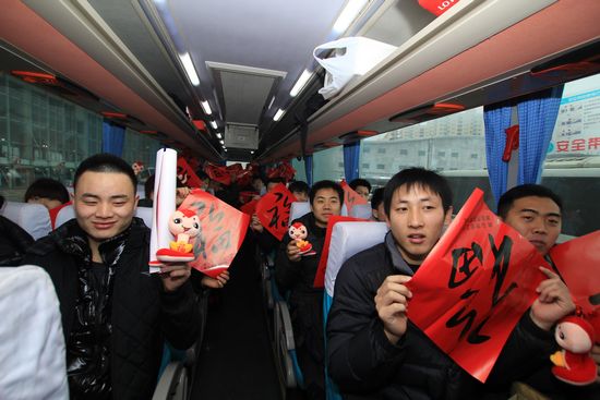 ?????青島新聞網(wǎng)2月6日訊 今天早上7:40,交運(yùn)集團(tuán)青島汽車東站候車大廳內(nèi)張燈結(jié)彩,人們臉上洋溢著即將回家團(tuán)聚的喜悅。承載著1051海爾員工的13個(gè)長(zhǎng)途車班次陸續(xù)開(kāi)出了青島汽車東站,平安運(yùn)送農(nóng)民工兄弟踏上了返鄉(xiāng)旅途,這是青島市總工會(huì)、交運(yùn)集團(tuán)春節(jié)前歡送農(nóng)民工平安返鄉(xiāng)的平常一日。市總工會(huì)、交運(yùn)集團(tuán)有關(guān)領(lǐng)導(dǎo)上車為返鄉(xiāng)員工發(fā)放了福字、吉祥物等, 祝福辛勞一年的職工們平安回家過(guò)年。細(xì)心的汽車東站員工還為返鄉(xiāng)務(wù)工人員準(zhǔn)備了免費(fèi)姜湯御寒。