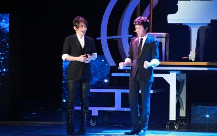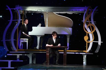 ????劉謙首先表演了杯子穿紅酒,隨后是以撲克牌為主要道具的魔術(shù)。伴隨著李云迪演奏的優(yōu)美鋼琴曲,他將手中的一疊撲克牌瞬間變成琴鍵,十分精彩,此外,劉謙魔術(shù)還與李云迪大玩“乾坤大挪移”,瞬間換位置。
