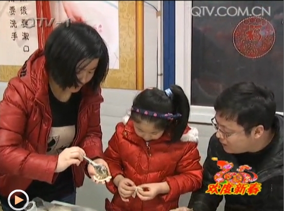 ????物料主管呂穎聰老家在陜西,妻子也在工地上干活。今年,夫妻倆特地把6歲的女兒呂佳璐接到工地上過年,一家三口一起動(dòng)手為大家包餃子。