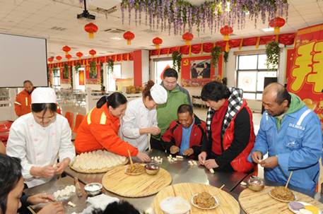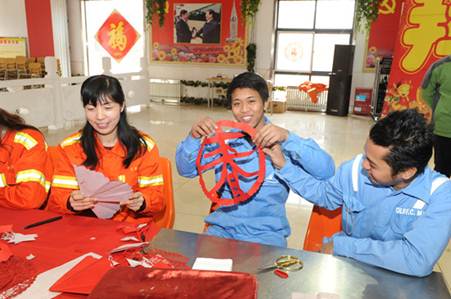 ????火紅的窗花和團圓的餃子最具中國的“年”味。前港公司用心組織,精心安排?;顒又?,外籍船員們和公司職工一起剪窗花、包水餃,歡聲笑語、親情融融。為了讓在留守在船上的外籍船員能夠共同分享感受這份溫暖,前港公司還派出專人將熱騰騰的水餃送上了船,紅彤彤的窗花帖上了船。