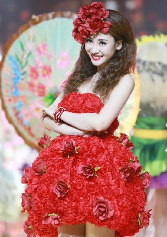 柳巖穿透視玫瑰裝頭戴大紅花 朱丹同臺(tái)拼身材(圖)