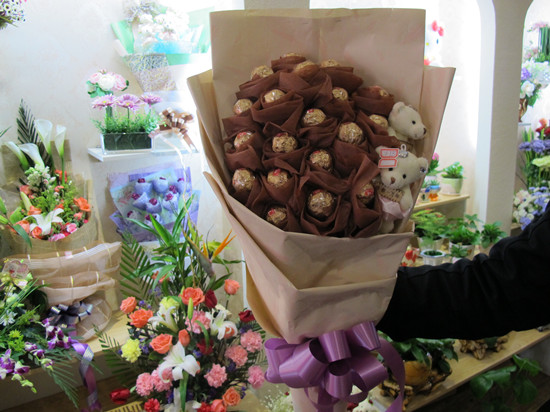 用巧克力做成的創(chuàng)意花束在年輕人中很受歡迎