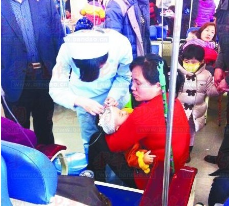 15日,市婦兒醫(yī)院感冒患兒扎堆。