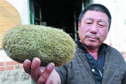 晚報訊 前不久,膠州市里岔鎮(zhèn)張應社區(qū)農民陳玉亮宰殺家里養(yǎng)了7年的老母豬時,意外從豬胃里掏出一個重達兩斤三兩的毛茸茸的橢圓形 “怪蛋”,眾多村民猜測是“豬砂”。昨天,陳先生求助本報,希望找專家?guī)椭b別一下這究竟是個什么東西。