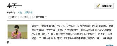 李天一,著名歌唱家李雙江之子。1996年4月出生于北京音樂(lè)世家,母親夢(mèng)鴿是知名歌唱家。曾就讀北京海淀區(qū)中關(guān)村第三小學(xué)、人民大學(xué)附中、美國(guó)Shattuck-St. Mary's School(沙特克圣瑪麗學(xué)院)冰球?qū)W校。2011年9月14日下午,李雙江對(duì)其子李天一打人事件做出處理回應(yīng)后,事件中受傷夫婦與李、蘇二人家長(zhǎng)會(huì)面,雙方達(dá)成和解。2012年9月19日,李天一被解除教養(yǎng)。