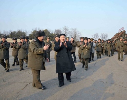 圖為朝鮮最高領(lǐng)導(dǎo)人金正恩親臨炮兵部隊(duì)現(xiàn)場(chǎng)指揮。
