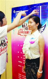 ????在2012山東航空全國空乘招募大賽海選青島站,共有600余名選手報名,最終過關(guān)的僅有57名。記者了解到,很多青島女孩不是因為學歷、相貌、舉止,而是因為身高超限遭淘汰。參賽女性身高要求在164-170厘米,男性在175-180厘米,而在青島賽區(qū)高個兒女孩一上午就有三四個因為身高超高被“刷”掉,還有二十多個女選手在前期核對身高信息時就被告知不必來現(xiàn)場了。