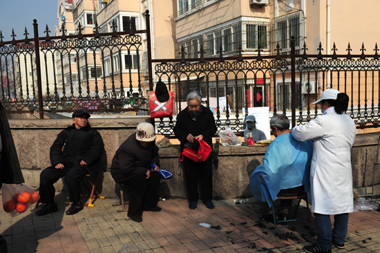 青島新聞網(wǎng)3月8日訊  一把鋒利的剃刀,一位雙鬢斑白的老人,一張斑駁老舊的椅子,伴隨著嗞嗞拉拉的聲音,胡須落地,熱毛巾從臉上撤下,老人長舒一口氣,對視鏡子自語道:“舒服啊……。”這樣的畫面可能再過幾年,就只能從影像才能看到了。
