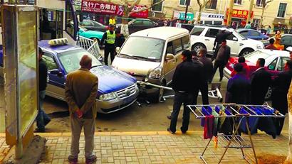 人民路四車連撞堵成一鍋粥 護(hù)欄被撞碎(圖)