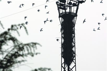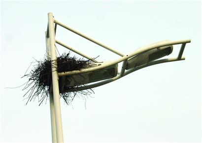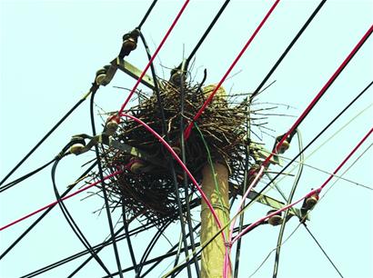 3月份至5月份是喜鵲的筑巢高峰期,更有意思的是,喜鵲們對鳥巢開始講究建筑質(zhì)量了,樹枝和草棍早已被淘汰,鐵絲成了主要的“建筑材料”。電力部門工作人員告訴記者,曾在城陽北站附近拆了一個“豪華”鳥巢,光鐵絲就重達11市斤。張世平解釋說,到處建窩反映了雄喜鵲的“領(lǐng)地”意識,這是它們在劃分地域防情敵。(記者 于波 徐常青 攝影報道)