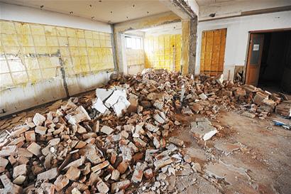“這不是承重墻,這些柱子是承重的,這些墻是后來自己蓋上的,砸掉了不要緊。 ”工人給記者看了看已經(jīng)砸下來的磚墻,發(fā)現(xiàn)的確不是混凝土鋼筋結(jié)構(gòu)。
