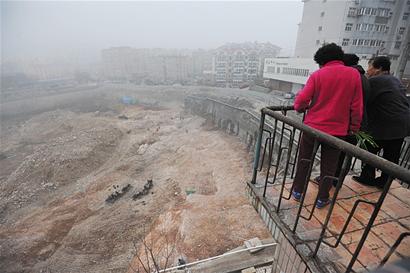 工地大坑挖到居民樓墻腳 站樓梯上如臨深淵(圖)