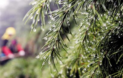昨天上午,記者在棧橋附近看見,濃霧之中,松樹枝濕漉漉的像下雨一樣不停往下滴水,人行道像是被雨水澆過一樣。站在人行道上迎面對(duì)海,陣陣海風(fēng)吹來的大霧讓記者喘不過氣來。站在