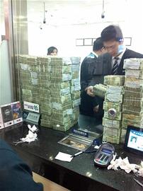 男子收到90萬(wàn)元貨款全1元鈔 裝45麻袋4天才存完(圖)