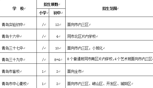 ????2013年,青島實驗初中、青島三十七中繼續(xù)面向市內(nèi)三區(qū)招生,通過電腦派位方式錄取。青島三十九中藝術(shù)班面向市內(nèi)三區(qū)招生。青島第二實驗初中招生范圍不變。