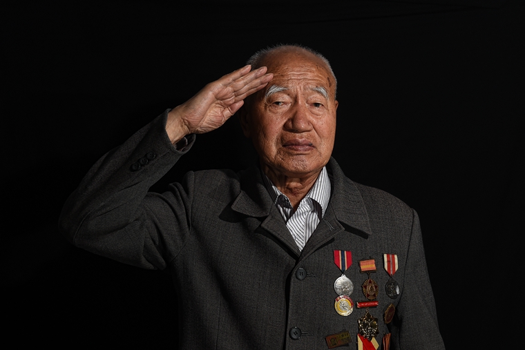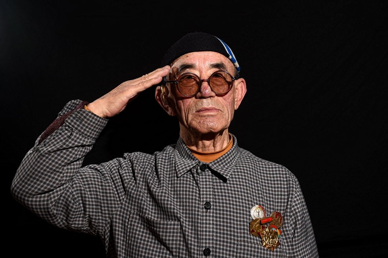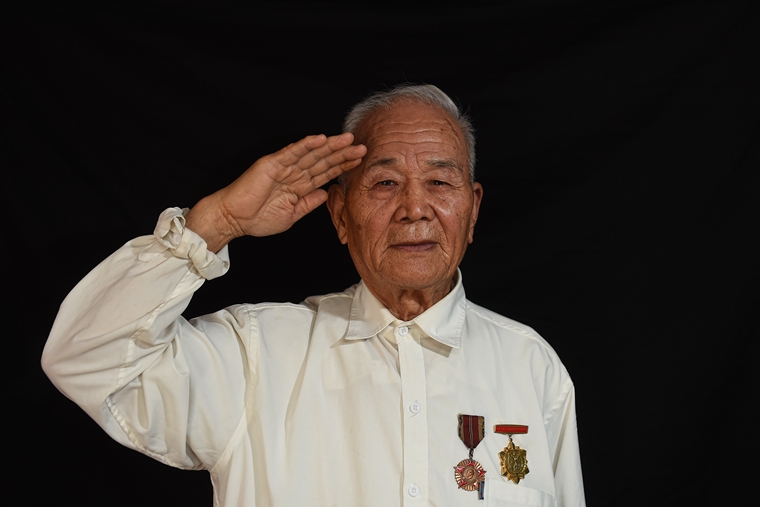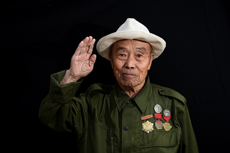 70年前,他們青春年少、風華正茂,70年后,他們耄耋之年、華發(fā)蒼顏。70年前,面對國仇家恨,他們義無反顧地加入革命隊伍,奮勇反抗日本侵略者。70年后,歲月在他們臉上雕琢出道道溝壑,戰(zhàn)火在他們心里留下累累傷痕。但只要提起那段烽火歲月、戴上榮譽勛章,他們會馬上挺直微駝的脊梁,將右手舉過頭頂。敬禮,老兵!