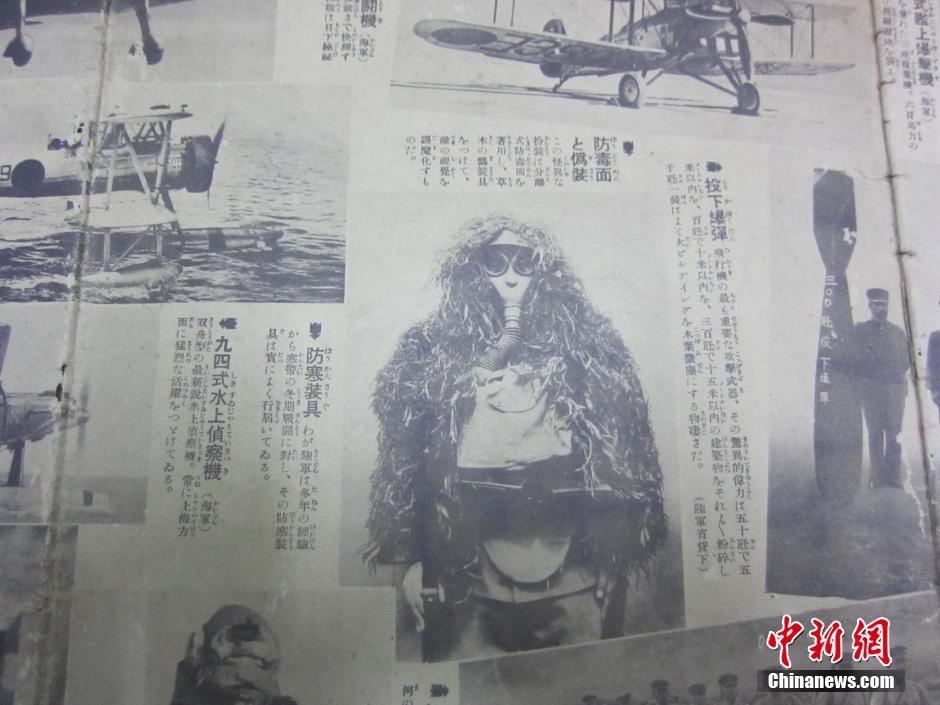 ????近日,湖南郴州北湖區(qū)發(fā)現(xiàn)一張由日本“日の出編輯局編篡”的《支那最新大地圖》。這張日本侵華作戰(zhàn)地圖發(fā)行于1938年1月1日,左側(cè)印有“特別注明,不許復(fù)制”字樣。地圖上詳細標注了當時中國中東部各省政府所在地、機場、鐵路、河道,以及石油、煤炭、鐵、羊毛等盛產(chǎn)地,還有國民政府所設(shè)無線電臺地點。地圖的背面還印制了《皇軍新兵器寫真一覽》,左上方注明“日本陸軍少將大場彌平編篡”。中新社發(fā)黃信粼 攝