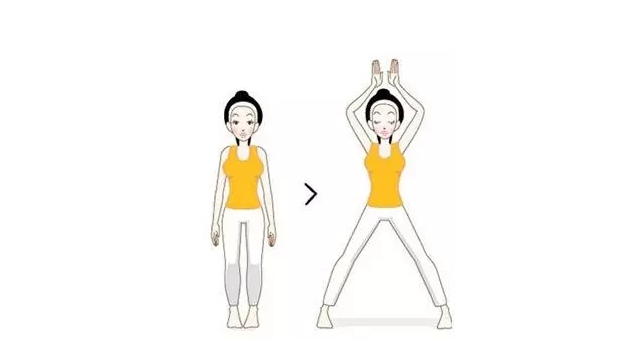 (開(kāi)合跳:雙腳并緊站立,雙臂放在身體兩側(cè)。身體向上跳起,落地時(shí)雙腳分開(kāi),同時(shí)把雙臂舉過(guò)頭頂。然后跳起,落地時(shí)雙腳并緊,雙臂重新放回身體兩側(cè)。)