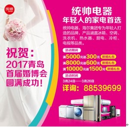 ????青島早報(bào)主辦的本屆青島春季婚慶博覽會(huì),是青島超大規(guī)模、世界品牌結(jié)婚展,旨在塑造“一站式”婚慶購(gòu)物的理念,讓準(zhǔn)新人通過(guò)各個(gè)細(xì)分參展企業(yè)來(lái)了解婚慶文化,同時(shí)實(shí)現(xiàn)打造共贏平臺(tái),提供一站服務(wù)的目的。