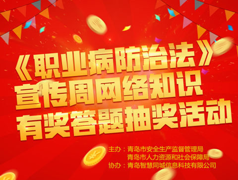 ????為進(jìn)一步加大職業(yè)病防治的宣傳力度,普及職業(yè)病防護(hù)知識及健康維權(quán)意識,營造好第十五個“《職業(yè)病防治法》宣傳周”的宣傳氛圍,青島市安監(jiān)局、青島市人社局與青島網(wǎng)絡(luò)傳媒集團(tuán)聯(lián)合舉辦了《職業(yè)病防治法》網(wǎng)絡(luò)知識線上有獎答題活動?;顒佑?月25日開始,歷時13天,并于5月19日在青島市安監(jiān)局進(jìn)行了公正公開的抽獎活動。