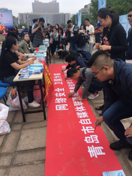 ????當(dāng)天,青島市自媒體聯(lián)盟組織青島知名自媒體到場參與活動。青島特色、青島今日、微視青島、薄閑陽、圖說視界、青島優(yōu)生活等成員單位認(rèn)真學(xué)習(xí)了《網(wǎng)絡(luò)安全法》相關(guān)知識,在“網(wǎng)絡(luò)安全 衛(wèi)國為家 青島市自媒體聯(lián)盟成員單位學(xué)習(xí)《網(wǎng)絡(luò)安全法》”橫幅上簽名。自媒體人紛紛表示,一定要學(xué)法、守法、宣傳法,維護(hù)網(wǎng)絡(luò)安全,積極傳播正能量。