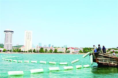 ????整個浴場被防鯊網(wǎng)合圍成了一個“廠”字形,“廠”字開口處位于魯迅公園礁石處。 “為了給游客們創(chuàng)造更安全舒適的休閑環(huán)境,下月15日,我們打算再下一層網(wǎng)?!币辉」芾磙k公室主任唐聞洲告訴記者,第二道網(wǎng)比第一道更長,長約1300米,可以將滸苔攔在浴場之外。