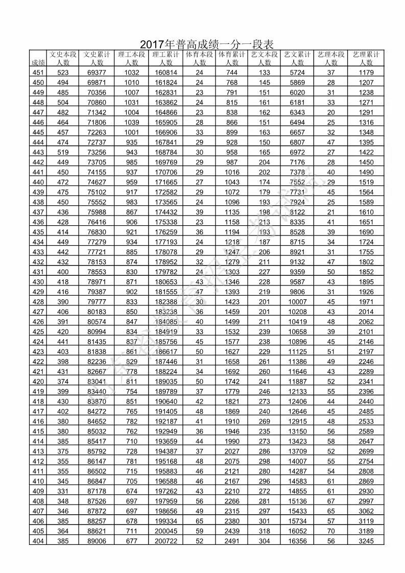 山東省2017年普通高考成績(jī)一分一段表出爐,看看你的分?jǐn)?shù)在全省能排第幾名?