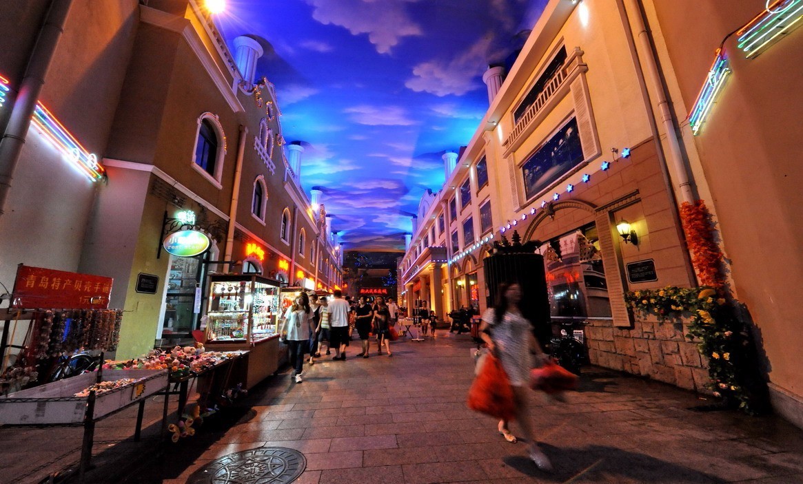 青島臺東商業(yè)步行街全長1000余米,是特色街區(qū)的中心街?!俺^壁畫夜賞燈,購物休閑在臺東”,是對臺東商圈最好的寫照。