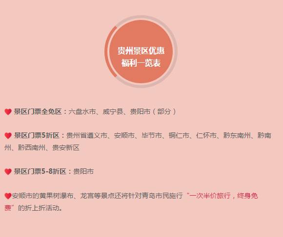3月份的時(shí)候,我們聽到了這個(gè)消息,青島人(含非青戶,但有青島居住證的)去貴州旅游景區(qū)門票將全免或者半價(jià)!