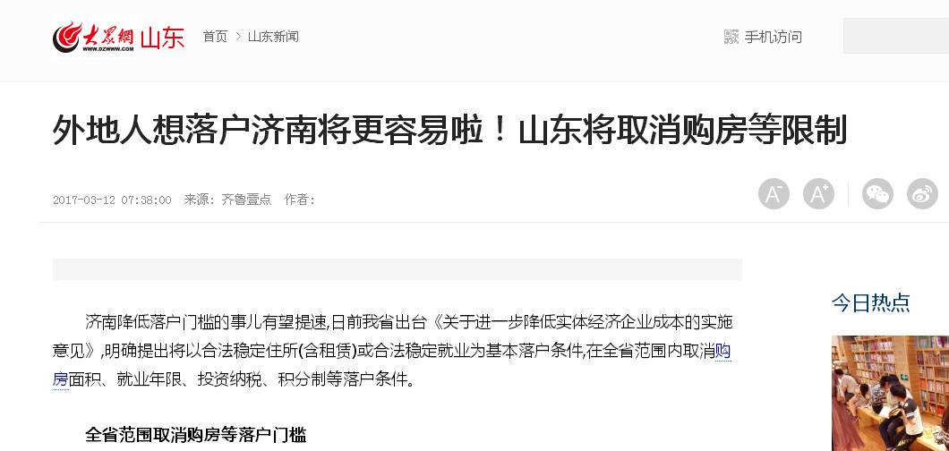 此前就有關(guān)于山東將取消購房等限制一說