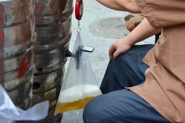 夏天的青島大街小巷都是賣散啤的,真正的隨時(shí)隨地滿足青島人喝啤酒的需求。小賣部、啤酒屋供不應(yīng)求,飯店、超市也都看的到幾個(gè)大啤酒桶。到了下班的時(shí)候,隨處可見(jiàn)提著散啤的青島人,空氣里都是新鮮的啤酒花味兒。
