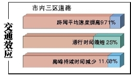 ????——停駛私家車改乘地鐵的多了。根據(jù)調(diào)查,地鐵3號(hào)線客流中在地鐵開通前采用小汽車方式出行的約占19%(按照目前日均20多萬人次的客流量來測(cè)算,意味著每天有超4萬人次停駛私家車),出租車方式出行的約占13.7%,也就是說共約有32.7%的地鐵客流是由個(gè)體交通轉(zhuǎn)移而來。地鐵開通吸引了其他機(jī)動(dòng)化方式出行的客流,一定程度上緩解了道路交通壓力。在加強(qiáng)交通管理、調(diào)優(yōu)交通信號(hào)、優(yōu)化交通組織、3號(hào)線全線開通等因素的共同作用下,市內(nèi)三區(qū)道路的整體運(yùn)行狀況有所改善。