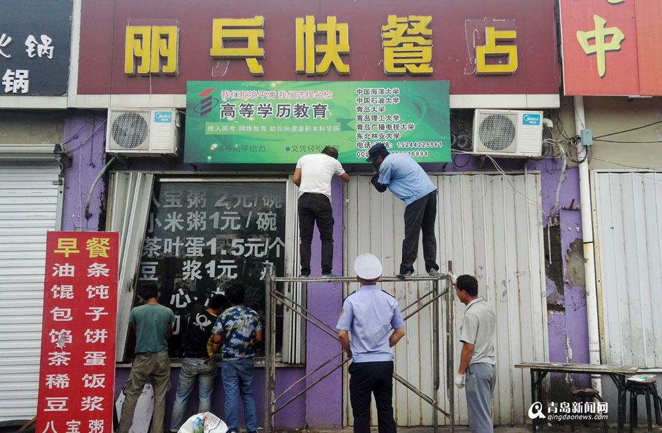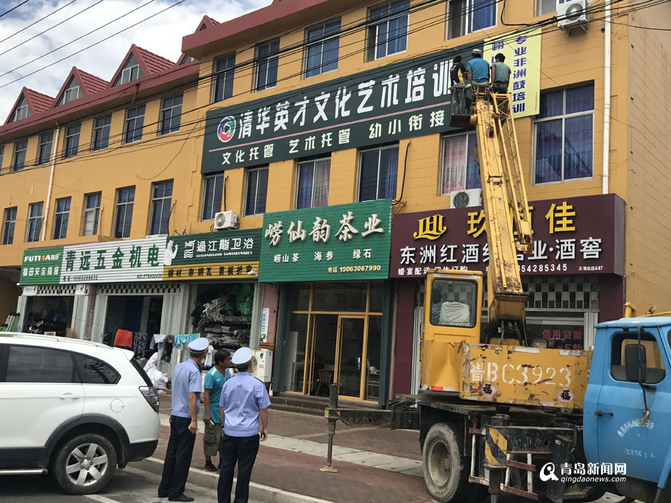 青島新聞網(wǎng)9月18日訊(記者張力偉)為了盡可能地對店面進行宣傳,不少商家將門頭廣告當(dāng)成了展示臺,門框玻璃、閣樓窗戶,只要能被人看見的地方,恨不得都打上自己的廣告。但是,雜亂無序的廣告和牌匾,卻給城市形象打了補丁。近日,王哥莊街道組織城管執(zhí)法等部門,依法對轄區(qū)主要道路兩側(cè)的二道眉門頭以及二皮臉廣告進行了徹底清理,共清理違法亂設(shè)廣告200余處,面積約500平方米。