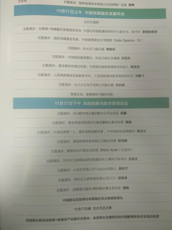 11月17日的峰會(huì)流程簡(jiǎn)表
