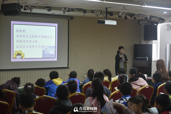 隨后,青島出版社的編輯老師帶領(lǐng)孩子們進(jìn)行了《給小時(shí)候讀詩》的伴讀活動(dòng)?;顒?dòng)過程中,孩子們積極主動(dòng),與編輯一起朗讀了多首瑯瑯上口的優(yōu)秀童詩,在閱讀中感受詩韻的魅力。