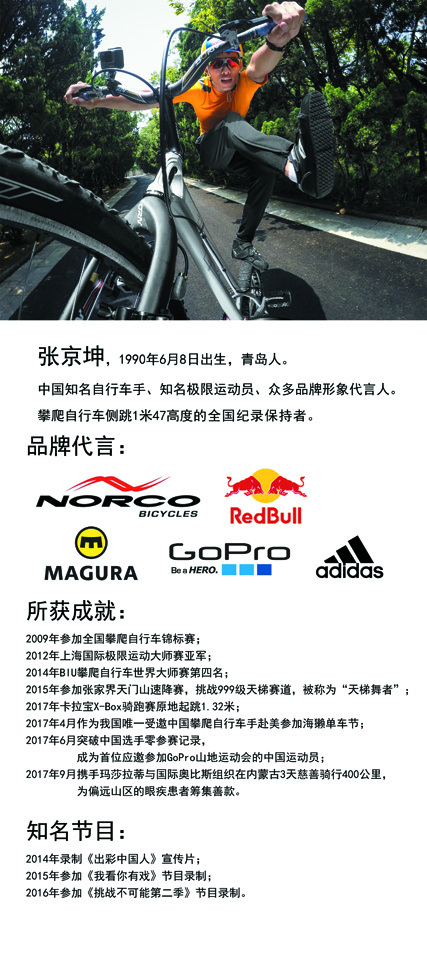 皮膚黝黑,笑容真誠,活力陽光,這就是極限運動員張京坤。他是攀爬自行車全國紀(jì)錄保持者,同時熱衷公益,在青年群體中具有極高的號召力。