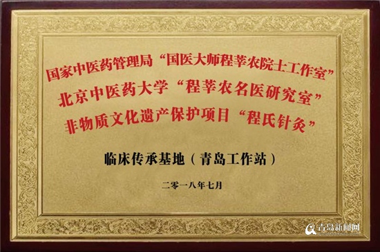 青島新聞網(wǎng)6月30日訊 (記者 張萍)今天上午,國家中醫(yī)藥管理局“國醫(yī)大師程莘農(nóng)院士工作室”、北京中醫(yī)藥大學“程莘農(nóng)名醫(yī)研究室”、非物質文化遺產(chǎn)保護項目“程氏針灸”臨床傳承基地(青島工作站)正式授牌,青島市北區(qū)衛(wèi)生和計劃生育局副局長馬海莉,辦公室主任姜濤,“程莘農(nóng)名醫(yī)研究室”負責人,“程氏針灸傳承中心”負責人、北京中醫(yī)藥大學程凱教授,中國針灸學會耳穴專業(yè)委員會委員、山東中醫(yī)藥大學楊佃會教授,青島大榮集團副總經(jīng)理孫云先生,現(xiàn)場共同見證。同時,將成立青島大誠中醫(yī)門診部,門診部擇址市北區(qū)南京路256號,位于青島阜外醫(yī)院對面,為青島針灸愛好者和基層醫(yī)生在家門口學習針灸提供機會和場所,也為青島市民中醫(yī)保健帶來新選擇。