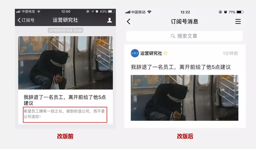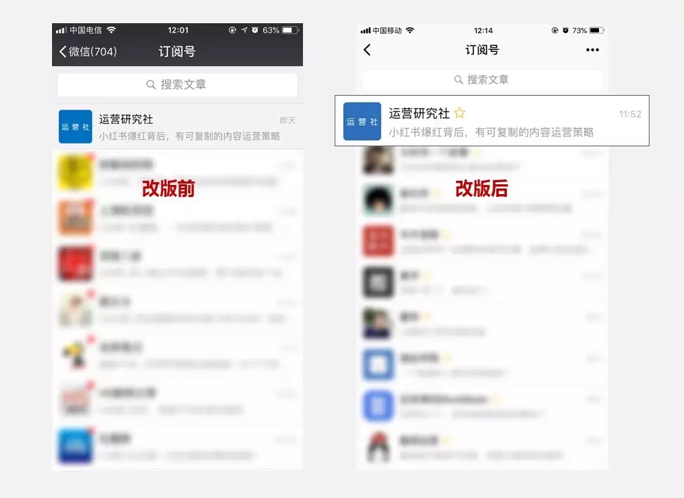 因為改版后,內(nèi)容單元改變了,以前是一個個公眾號,用戶會認為關(guān)注的是號主,也會有更高的忠誠度。