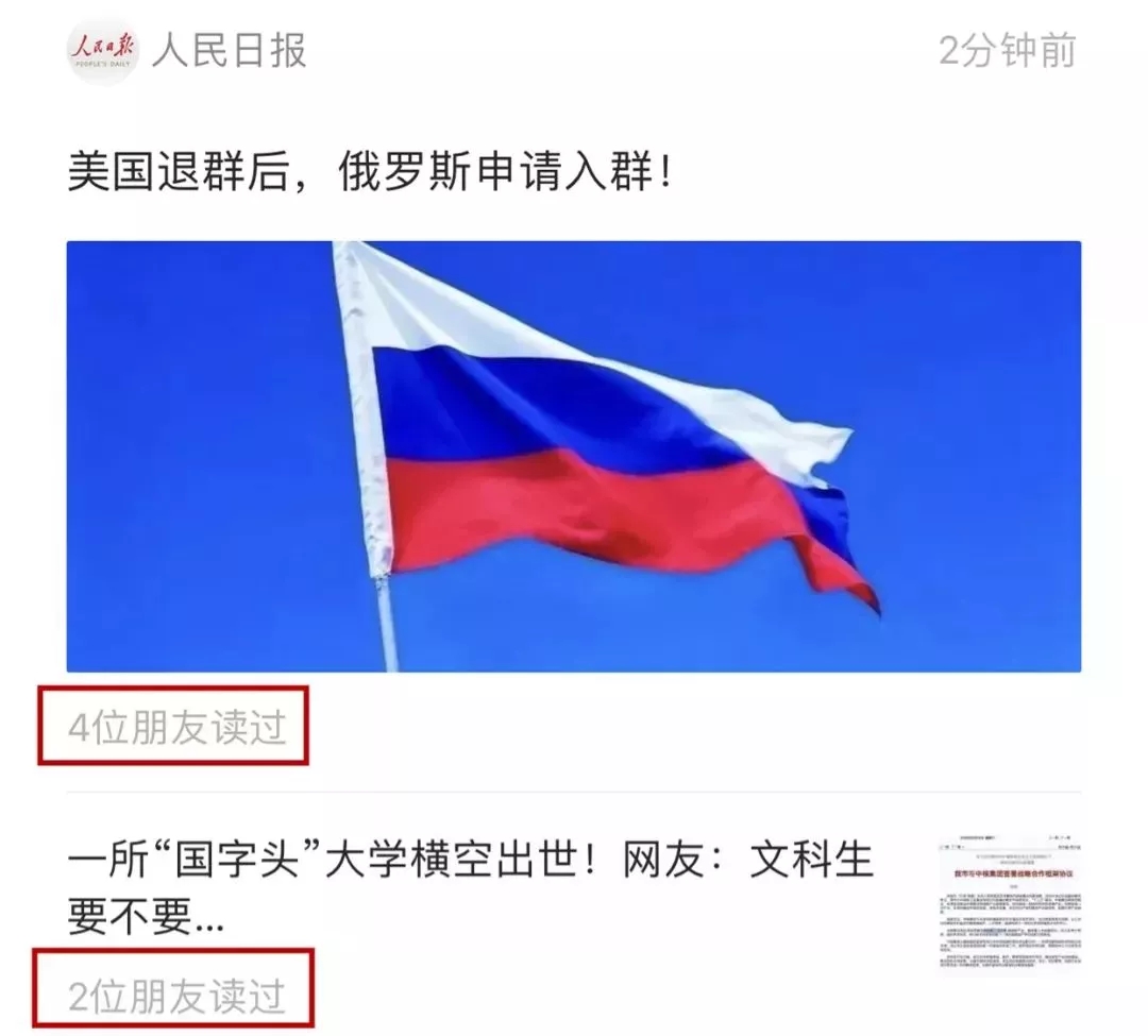 如果你的朋友看過某一篇推送,在新版的界面里,你便可以看到有多少好友和你志趣相投。