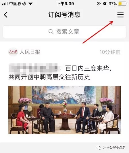 如果想快速找到之前置頂?shù)挠嗛喬枺c擊頁面右上方,進入訂閱號會話列表即可。
