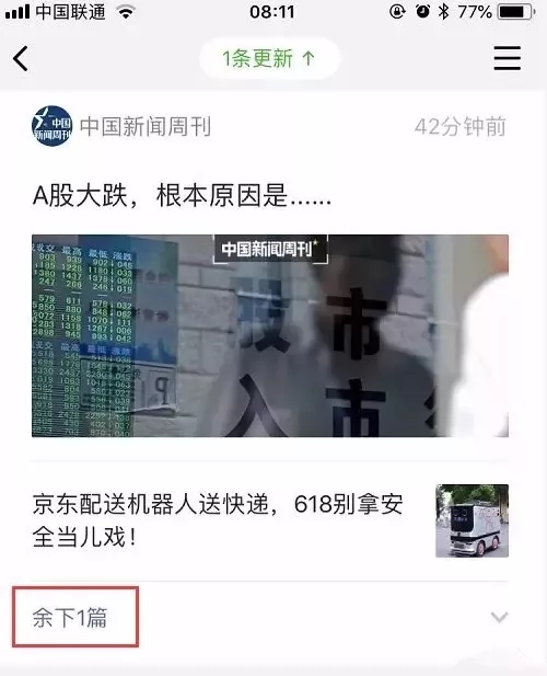 每個公眾號最多只顯示兩條推送文章,剩余幾篇內(nèi)容被折疊起來,只有點擊“余下幾篇”才能打開。