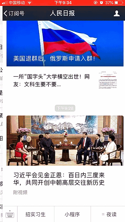 以前進入訂閱號列表,頁面由”公眾號名稱+標題”的純文字形式組成,看文章有2步操作,先點擊標題,再通過公眾號界面的封面圖進入文章。