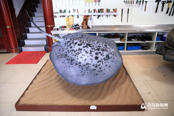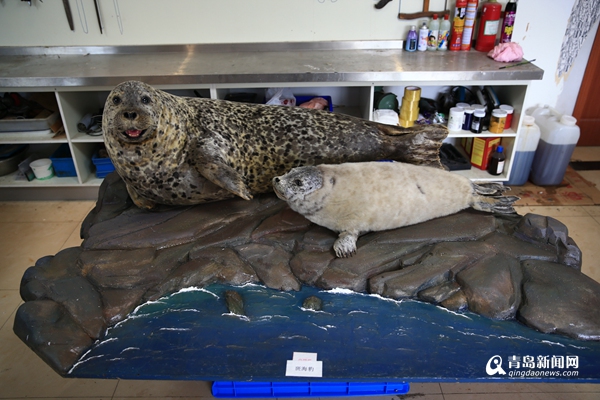 青島水族館選送的斑海豹母子情標(biāo)本及大型黑斑條尾魟標(biāo)本兩件作品,分別參與獸類專業(yè)組和魚類專業(yè)組的競爭。經(jīng)過標(biāo)本部全體成員1個(gè)多月的精心制作,作品順利完成并如期送達(dá)比賽現(xiàn)場。