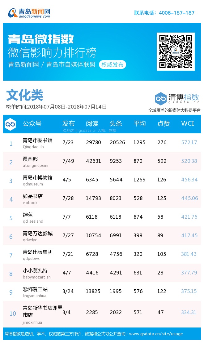 3、本次榜單收錄了青島14個行業(yè)微信公眾號,如您的賬號暫未收錄,可聯(lián)系4006-187-187。